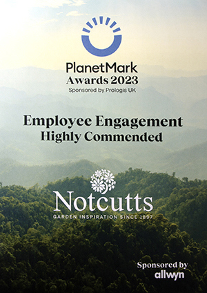 Highly commended for employee engagement in 2023 by PlanetMark for their exceptional progress in their environmental and sustainability journey you can discover more about the pathway of actions they are taking to bring positive contributions to nature, to biodiversity, to sustainability and the environment here https://www.notcutts.co.uk/sustainability